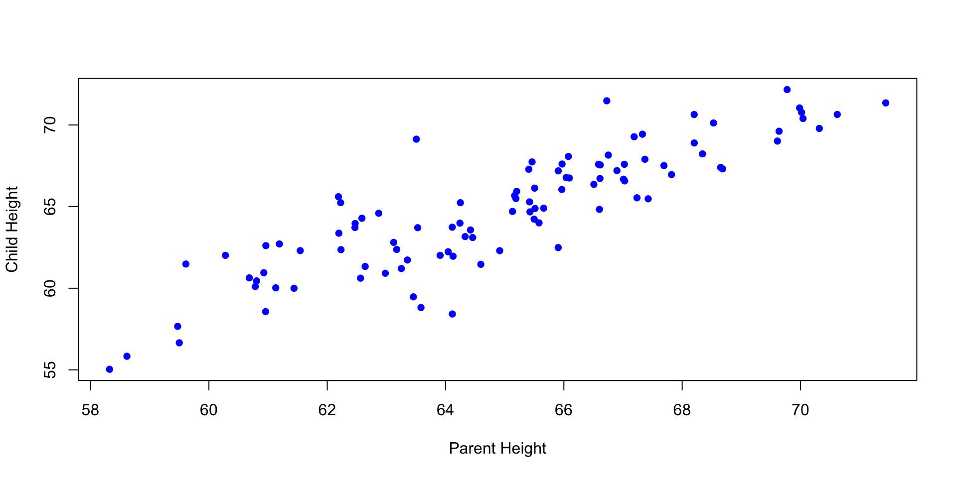 rnorm to create a random normal distribution of parent_heights (use parameters that seem reasonable to you).child_heights that’s related to parent_heights, ideally with some random error added. (Hint: Think about how a regression line works.).data.frame.[1] 0.8720213