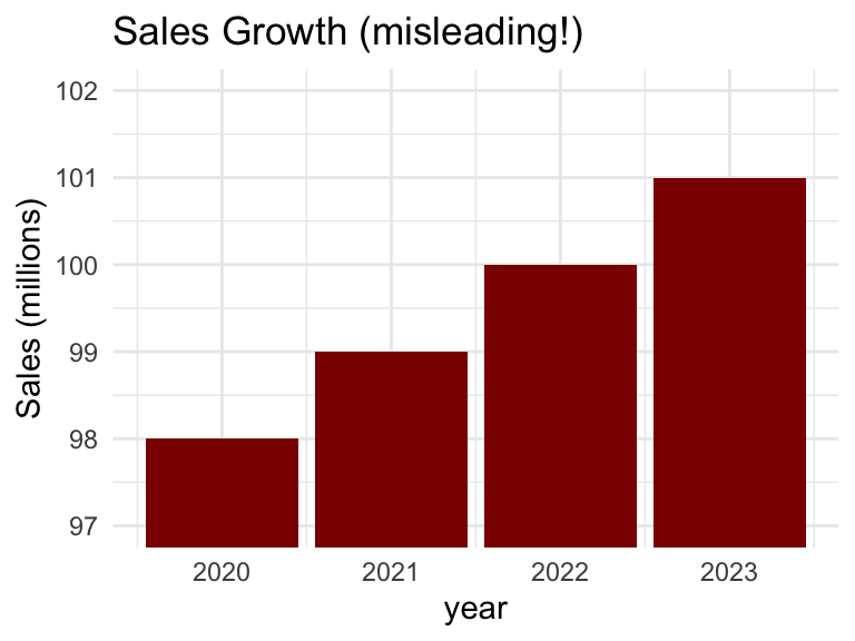 - Include zero baseline for bar charts (unless there’s good reason not to).