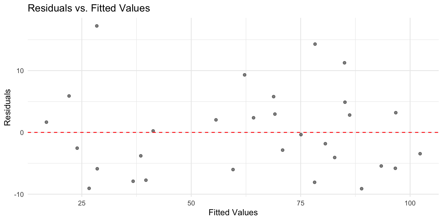 x = "Fitted Values", y = "Residuals") +