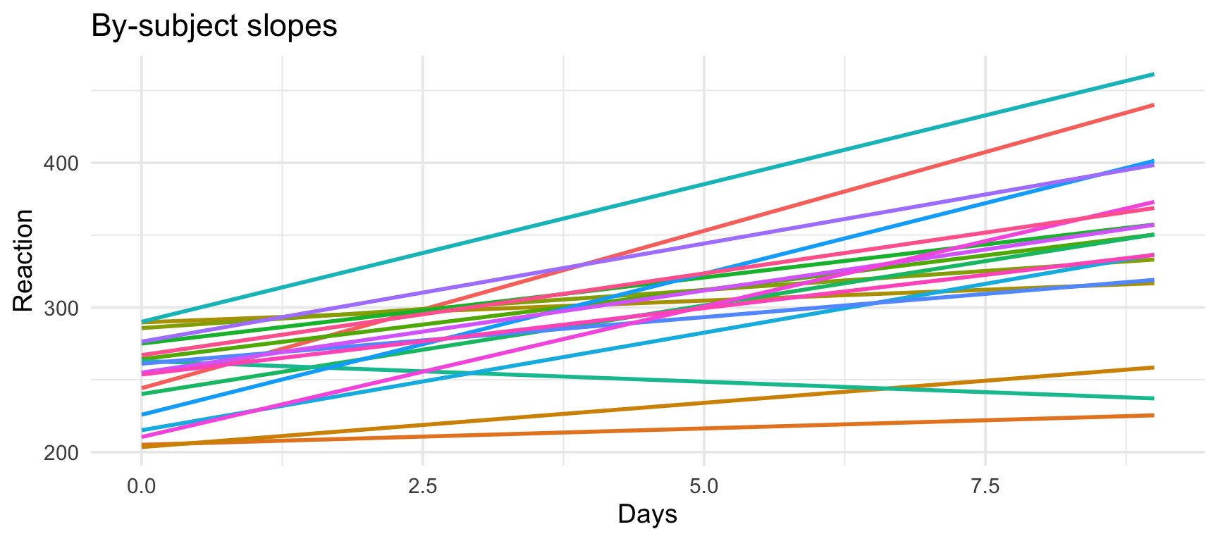 Reaction ~ Days: Fixed effect of Days(1 + Days | Subject): Random effects for Subject